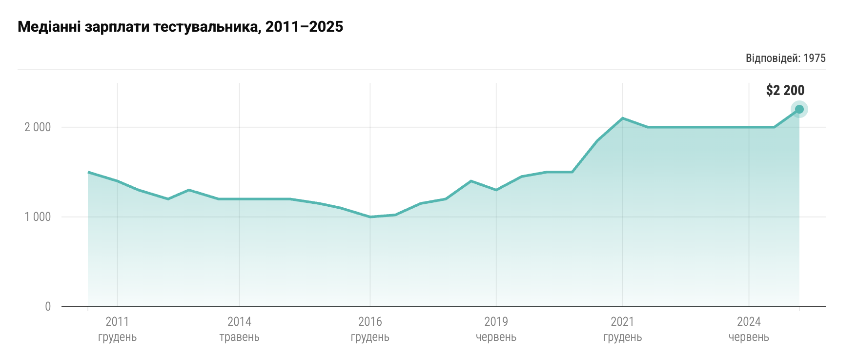 DOU опублікував актуальні дані про зарплати тестувальників, які базуються на результатах літнього опитування. Загальна медіана зросла з $2000 до $2200.