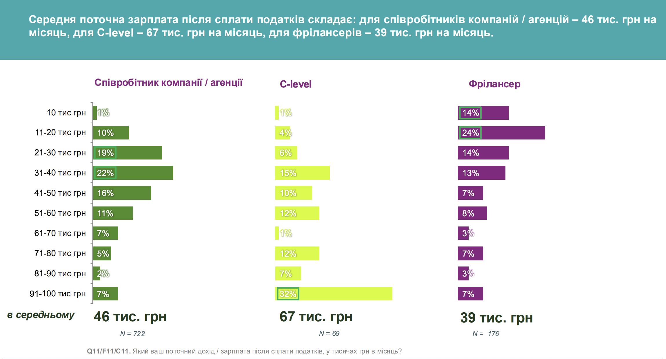 - C-level: 91 000 – 100 000 грн (32%)