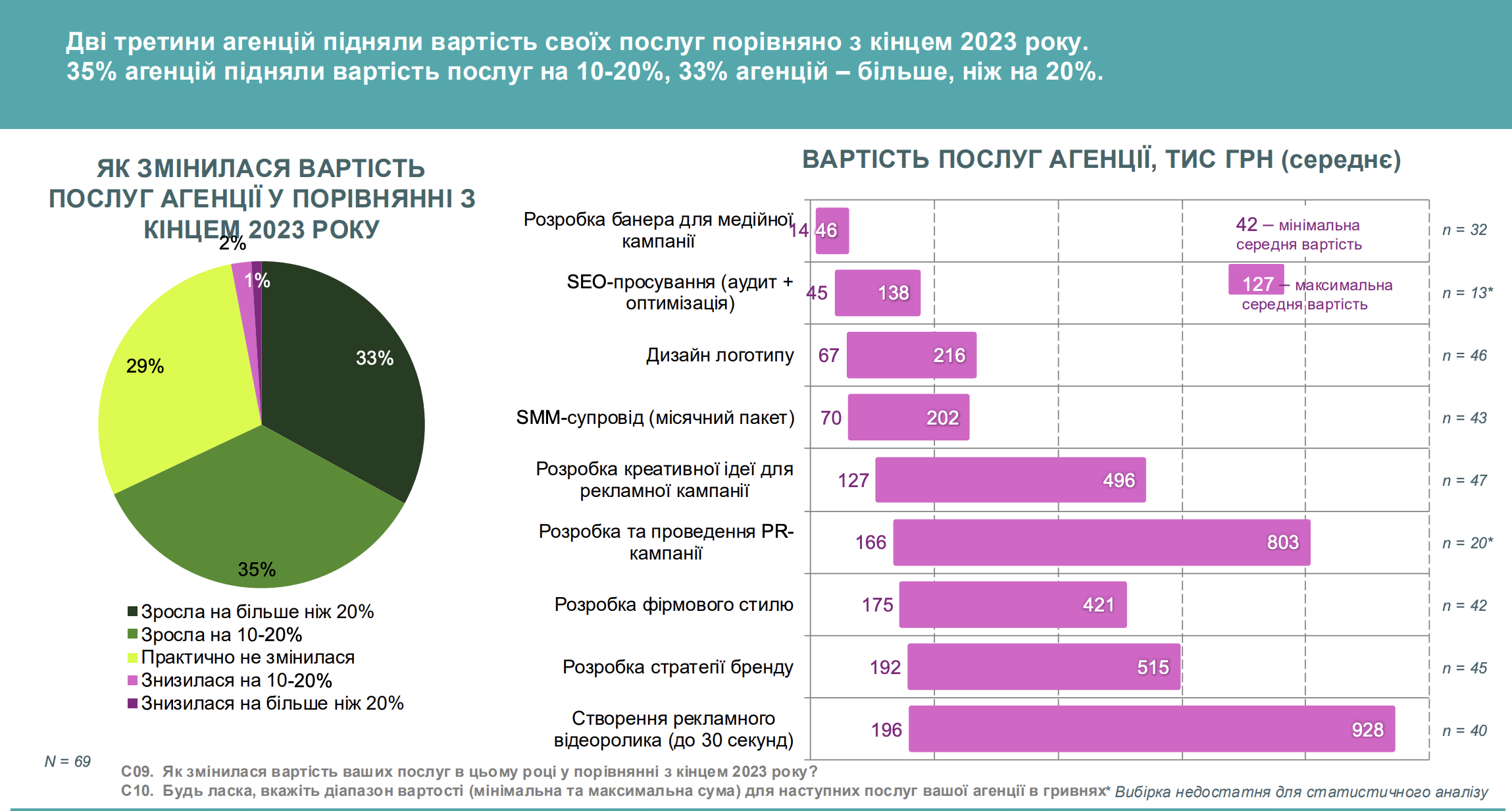 Дві третини компаній/агенцій підняли вартість своїх послуг порівняно з кінцем 2023 року: