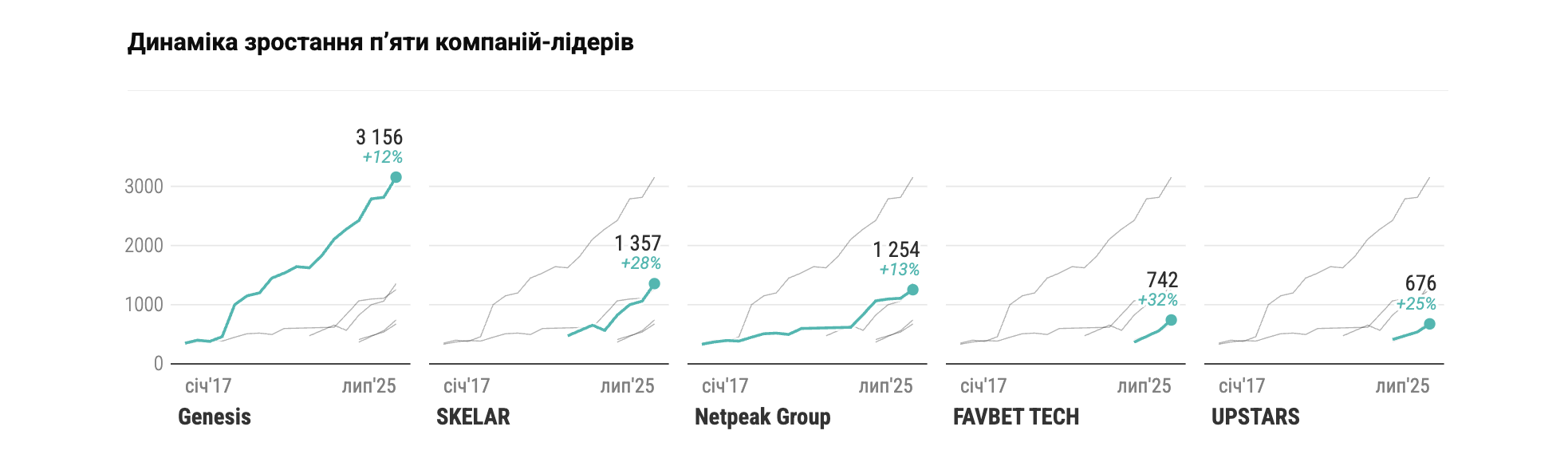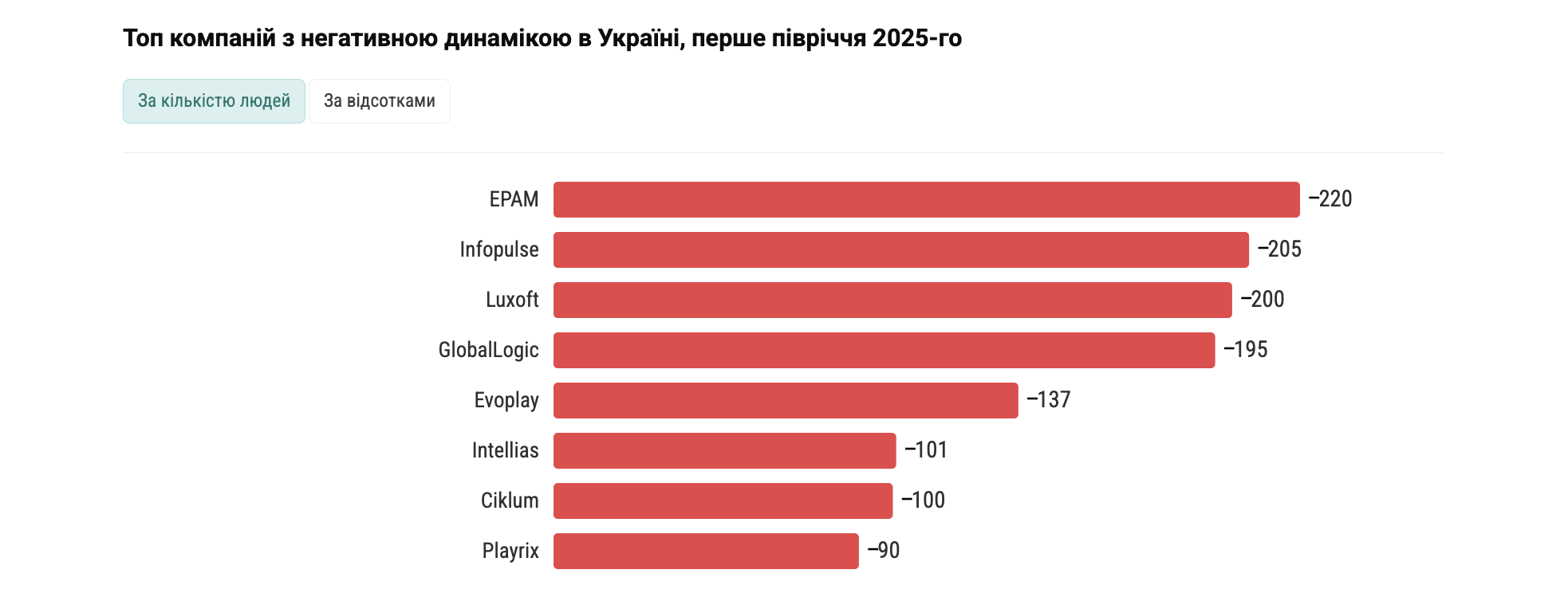 - Загальна кількість фахівців у 50 найбільших IT-компаніях України станом на липень 2025-го