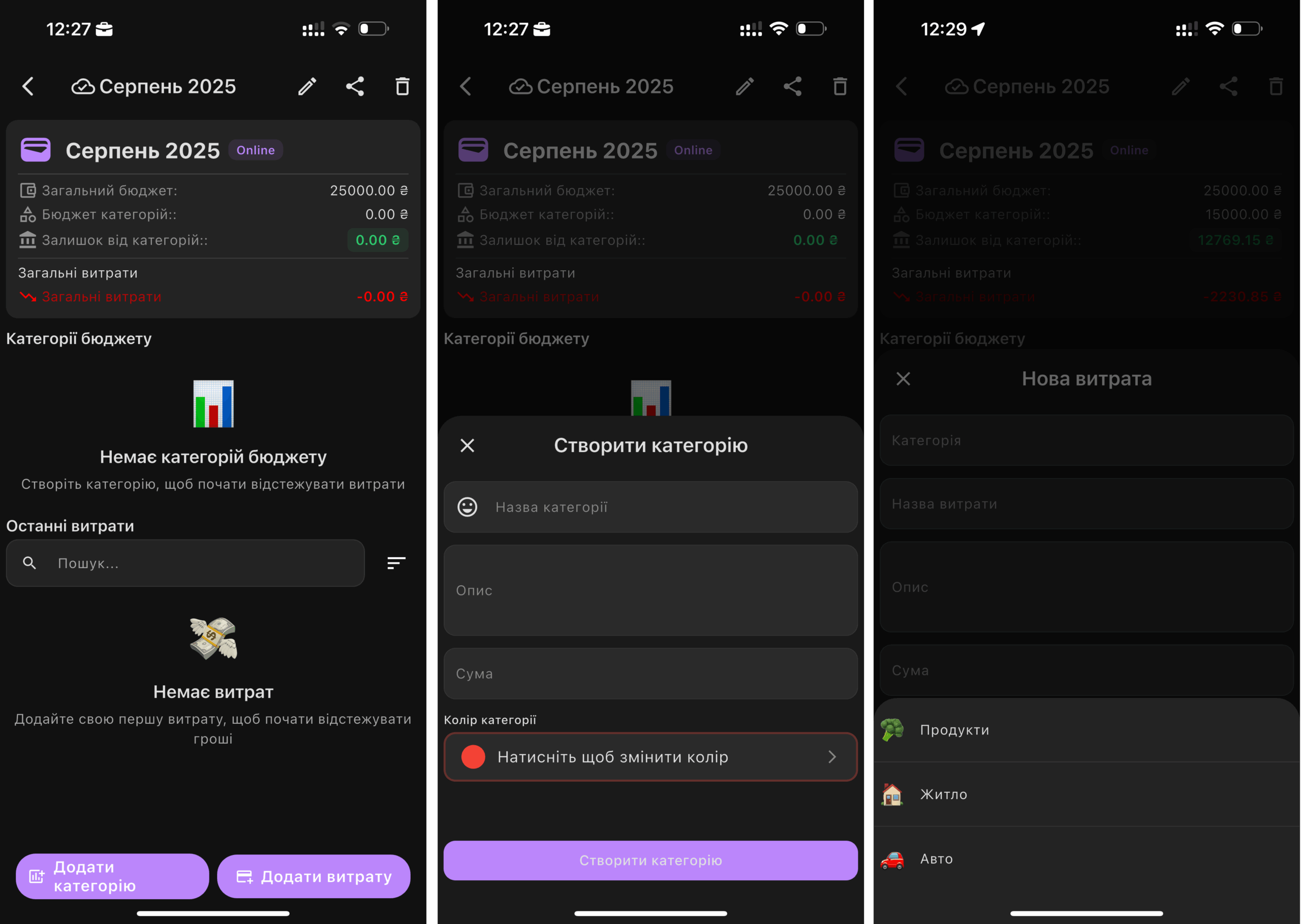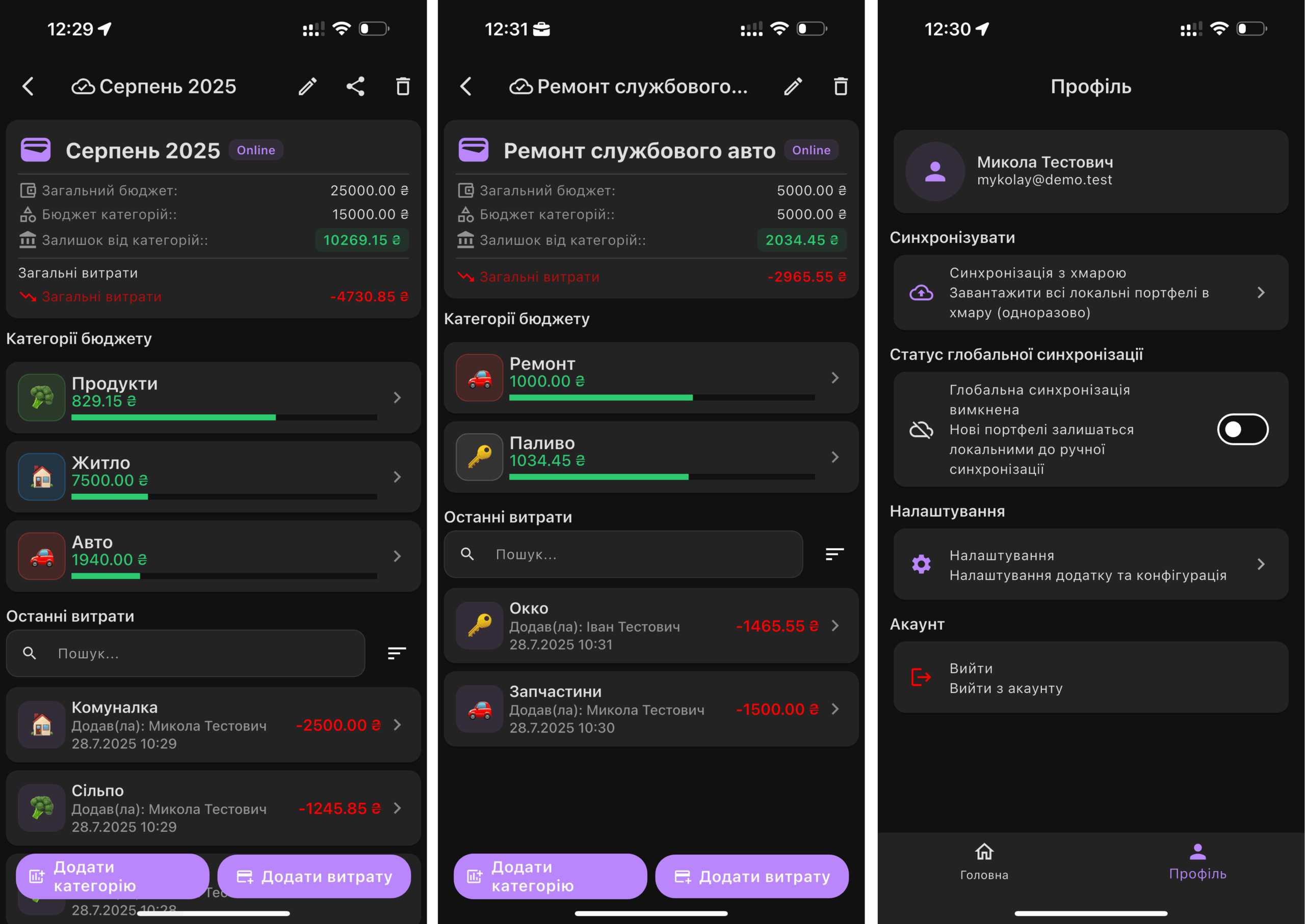 - швидке додавання витрат і наочний контроль залишків за категоріями,