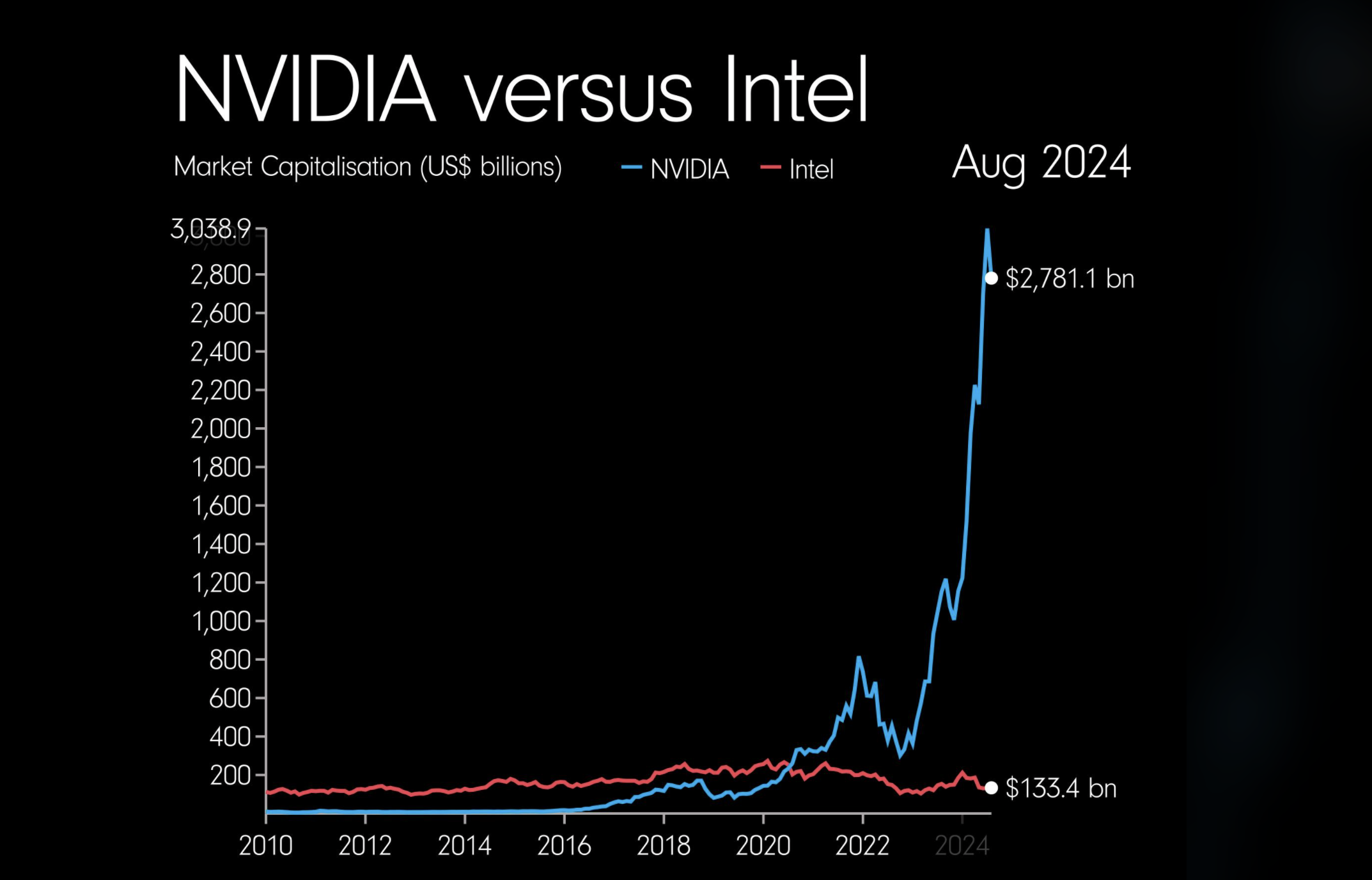 Продажі Intel впали, оскільки компанії, що займаються хмарними обчисленнями, масово перейшли на чіпи Nvidia. Водночас витрати Intel на персонал та виробництво зросли.
