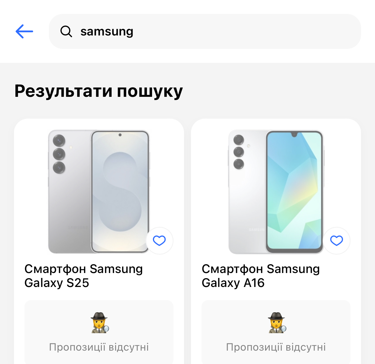 Гороховський також згадав ще кілька брендів, серед яких — Samsung та Xiaomi. Дійсно, якщо у пошуку monoмаркета написати Samsung, то абсолютно всіх моделей немає у наявності, хоча ще вчора вони були.