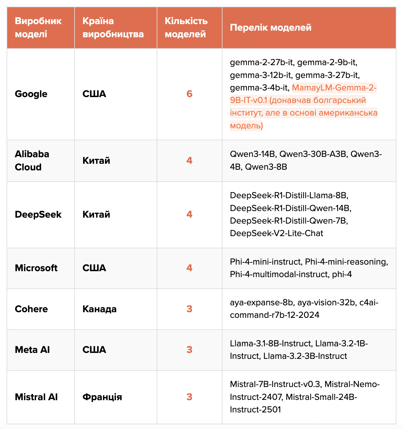 Texty.org.ua спільно з дослідницькою організацією із Сан-Франциско OpenBabylon проаналізували 27 відкритих LLM від різних провайдерів. Серед них – ШІ-моделі від Microsoft, Google, DeepSeek, Cohere, Alibaba Cloud, Mistral і Meta. Їм поставили запитання про Україну англійською мовою та оцінили їхні відповіді, щоб виявити, які з них найбільш упереджені.