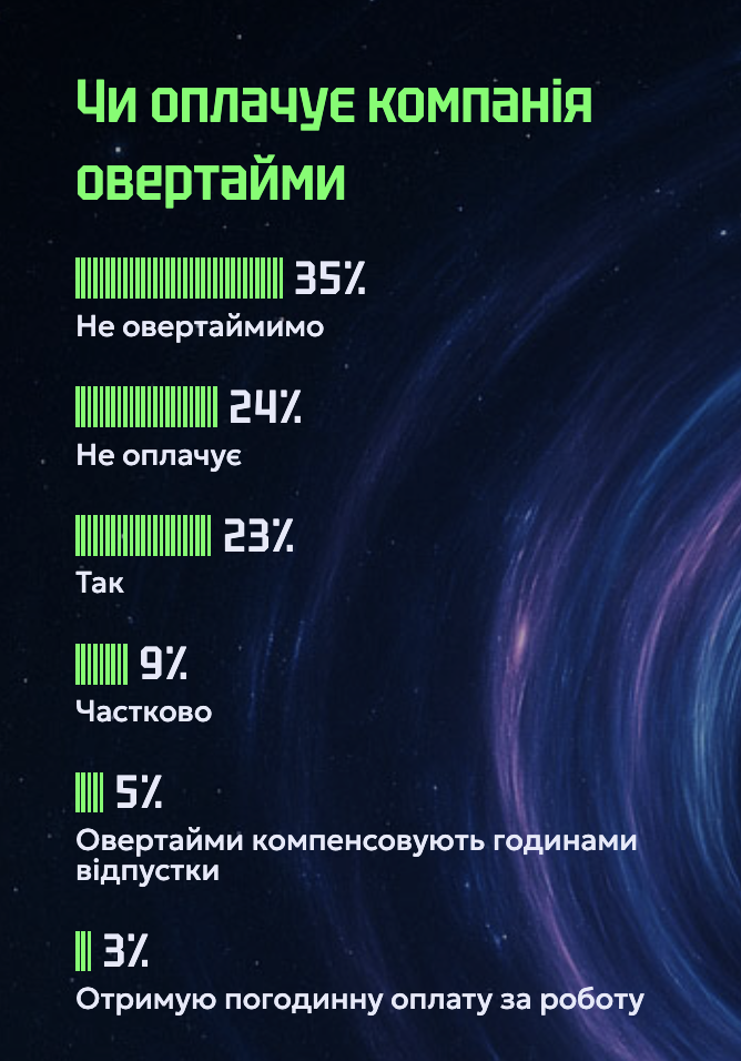 - 62% айтівців, які мають овертайми, отримують компенсацію.