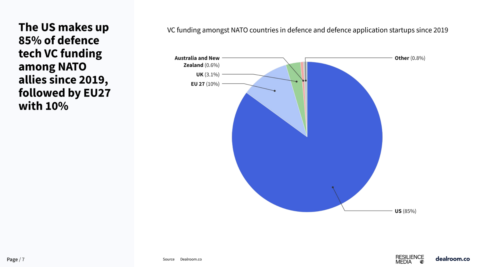 - США продовжують домінувати у сфері оборонного фінансування, забезпечивши 85% венчурного капіталу НАТО з 2019 року, однак частка ЄС зростає стабільно.