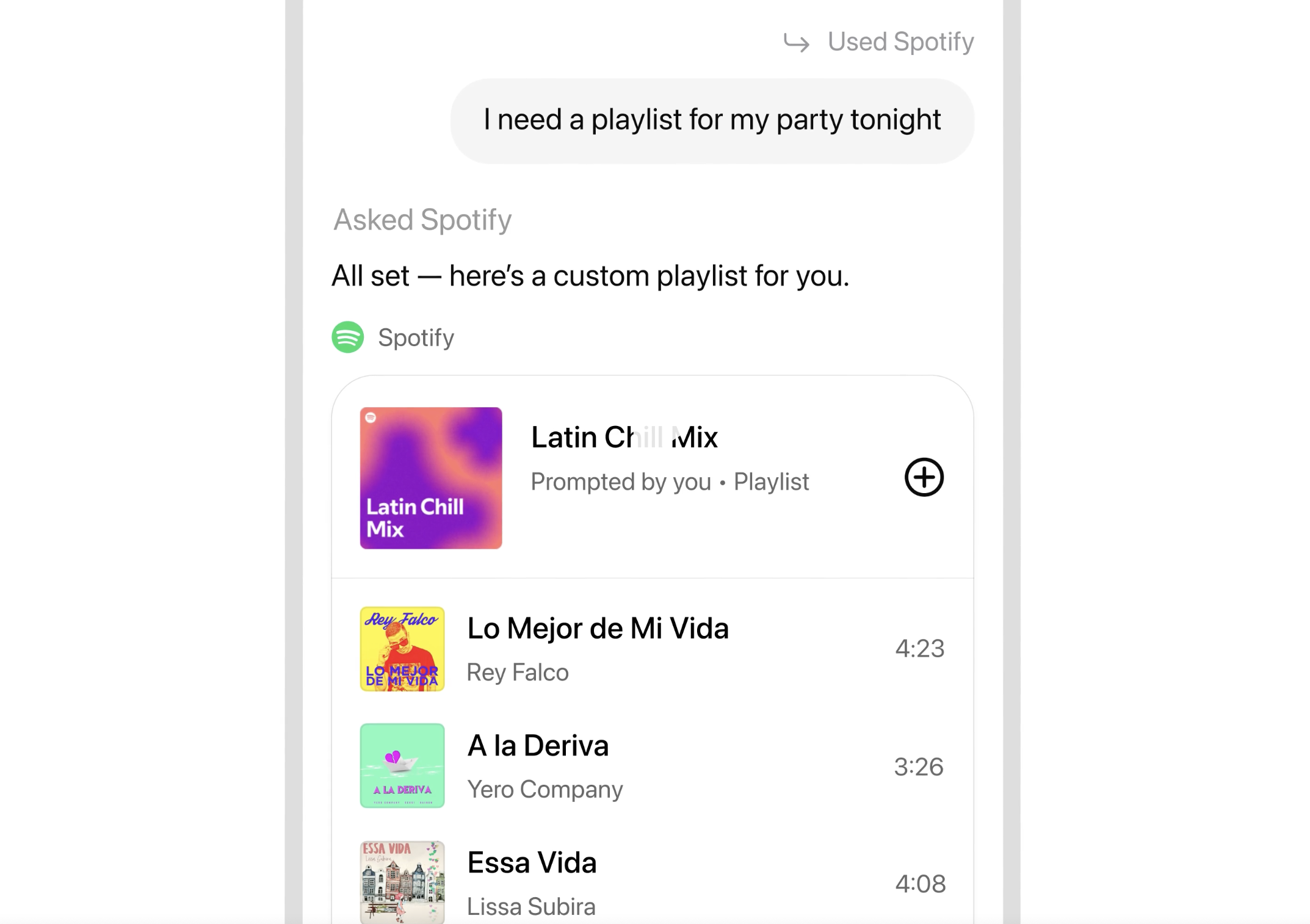 У демонстрації застосунку Zillow користувач міг шукати квартири у своєму районі, вказавши бажану ціну. ChatGPT показував інтерактивну мапу з варіантами, а потім пояснював деталі кожного з них у діалозі. ChatGPT також самостійно пропонуватиме відповідні додатки, коли це буде доречно. Наприклад, якщо користувач попросить скласти плейлист для вечірки, ChatGPT може викликати застосунок Spotify. У майбутньому планується додати DoorDash, Instacart, Uber та AllTrails.