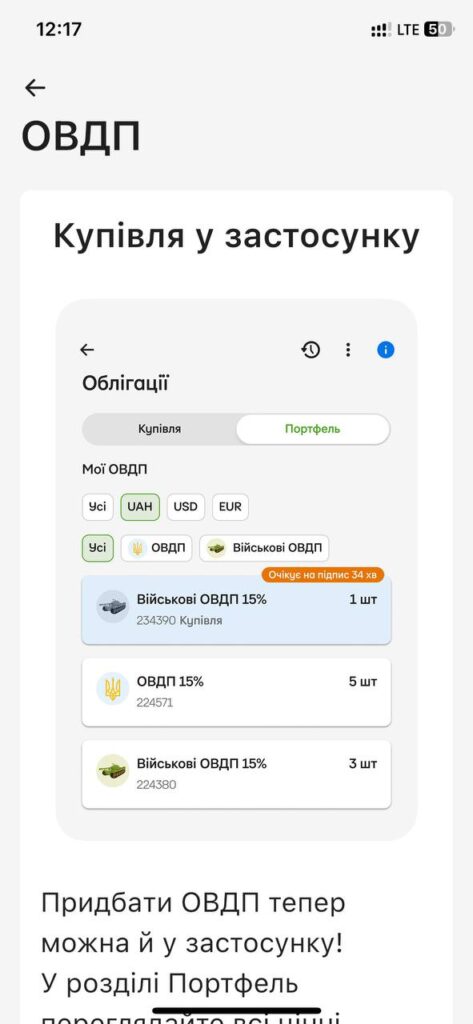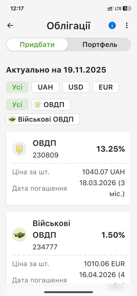 - Нові функції дозволяють не лише інвестувати, а й контролювати свій портфель: переглядати залишки цінних паперів, історію операцій, надходження купонів та виплати за погашенням.