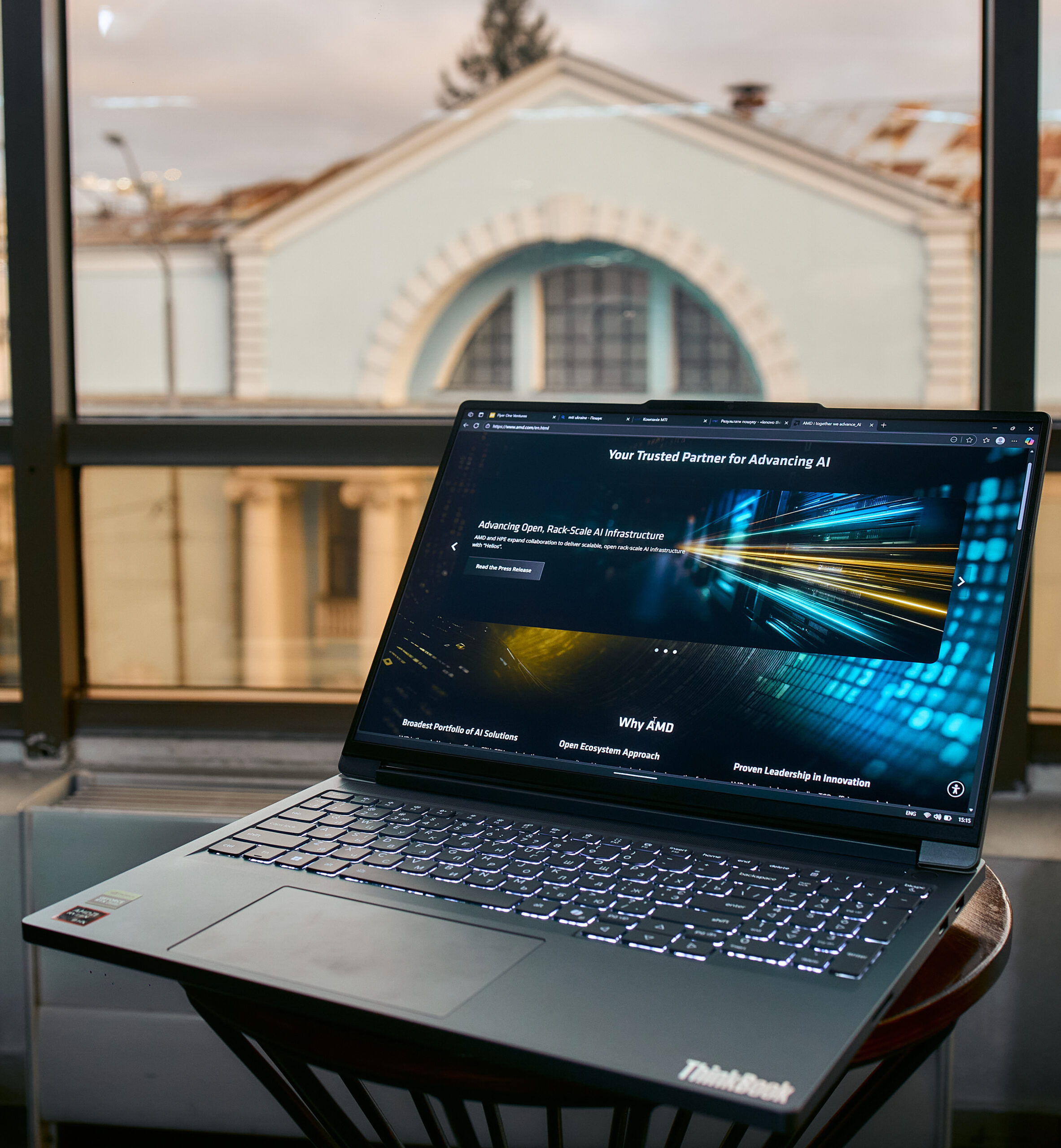 Lenovo ThinkBook 16p G6 ADR на базі процесора AMD Ryzen™ 9 8940HX — це ідеальне поєднання новітніх технологій та преміального дизайну. Цю модель ноутбука ви можете придбати у MTI — дистриб’ютора рішень на базі процесорів AMD.
