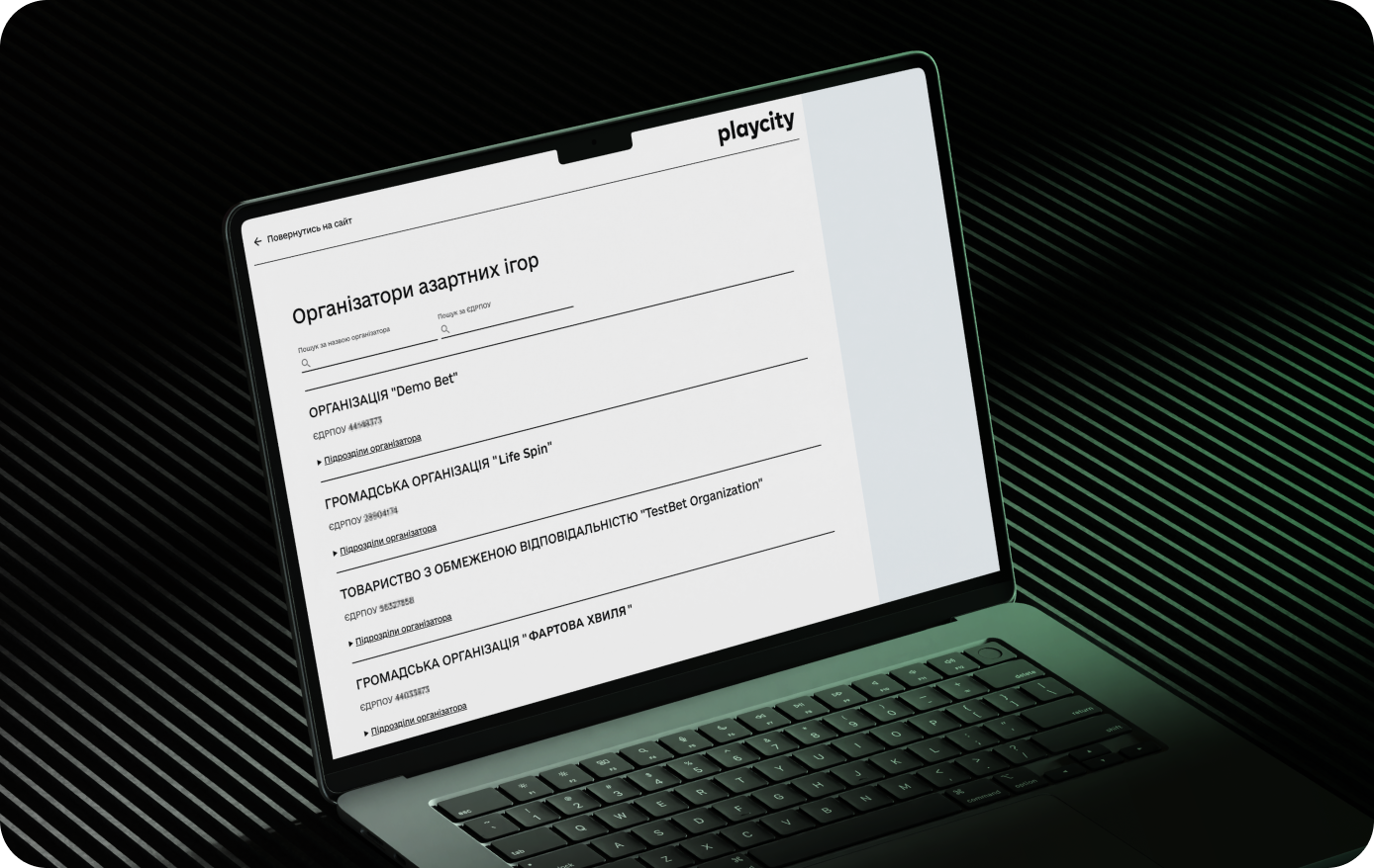 Реєстри містять дані про ліцензії організаторів, гральні заклади, обладнання, вебсайти та мобільні застосунки.