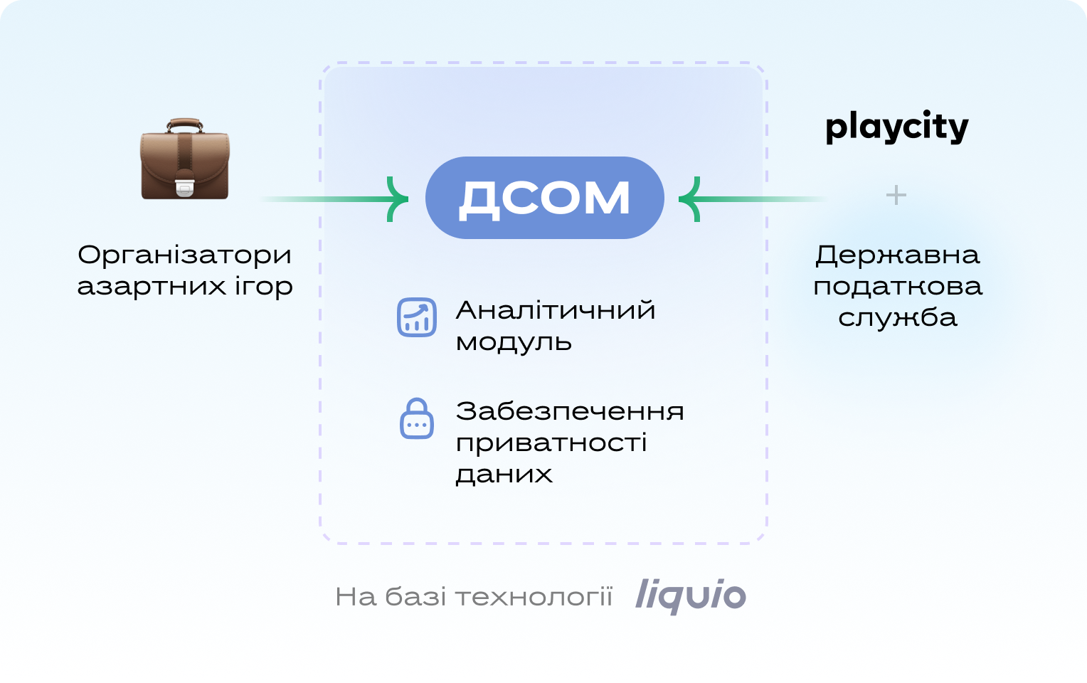 Система створена на low-code платформі Liquio, розробленій Kitsoft. Її архітектура дозволила одразу закласти масштаб на національному рівні: ДСОМ спроєктована для обробки до 100 000 операцій за секунду з можливістю подальшого зростання навантажень.