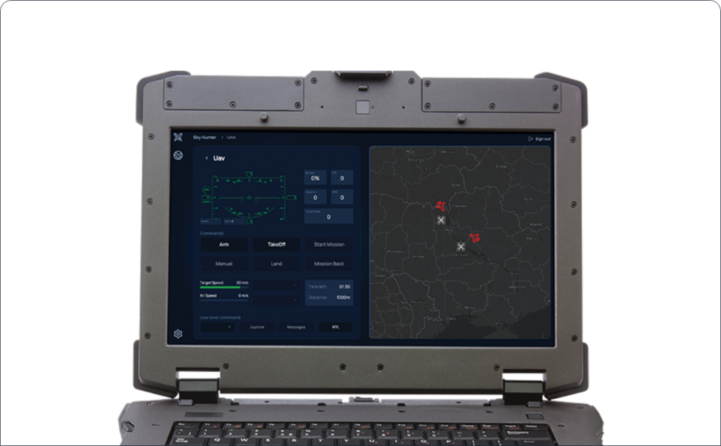 • Sky Hunter – це застосунок для наведення дронів‑перехоплювачів на повітряні цілі, насамперед дрони типу «Шахед» і розвідувальні БпЛА. По суті він дозволяє автоматизувати процес наведення на ціль. Система використовує дані з радарів у реальному часі для наведення ударних БпЛА на ворожі безпілотники.