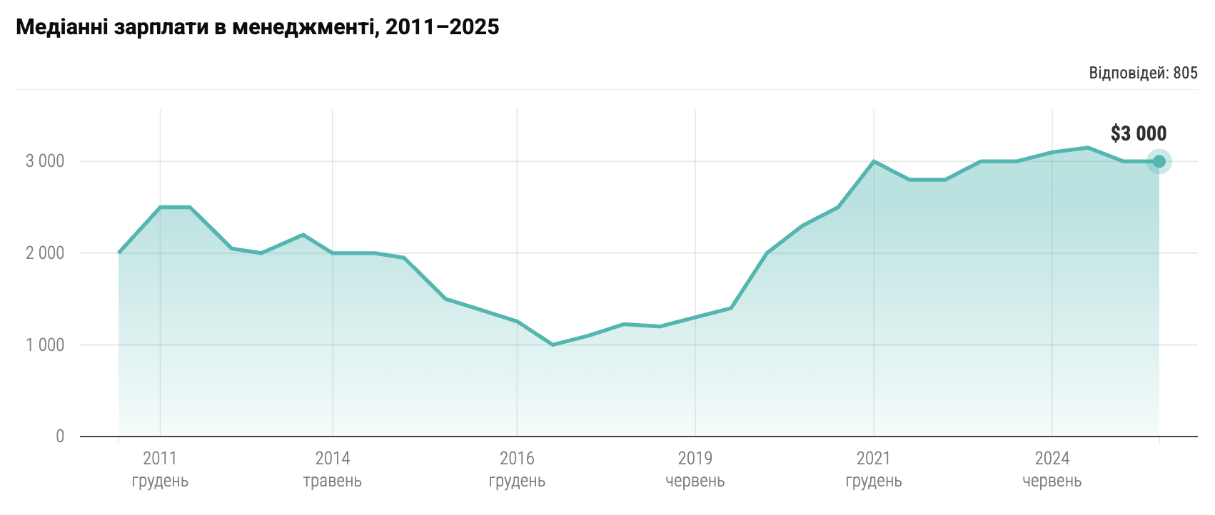 - У грудні 2025 року медіанна зарплата менеджерів в IT становила $3000 (без змін за пів року).