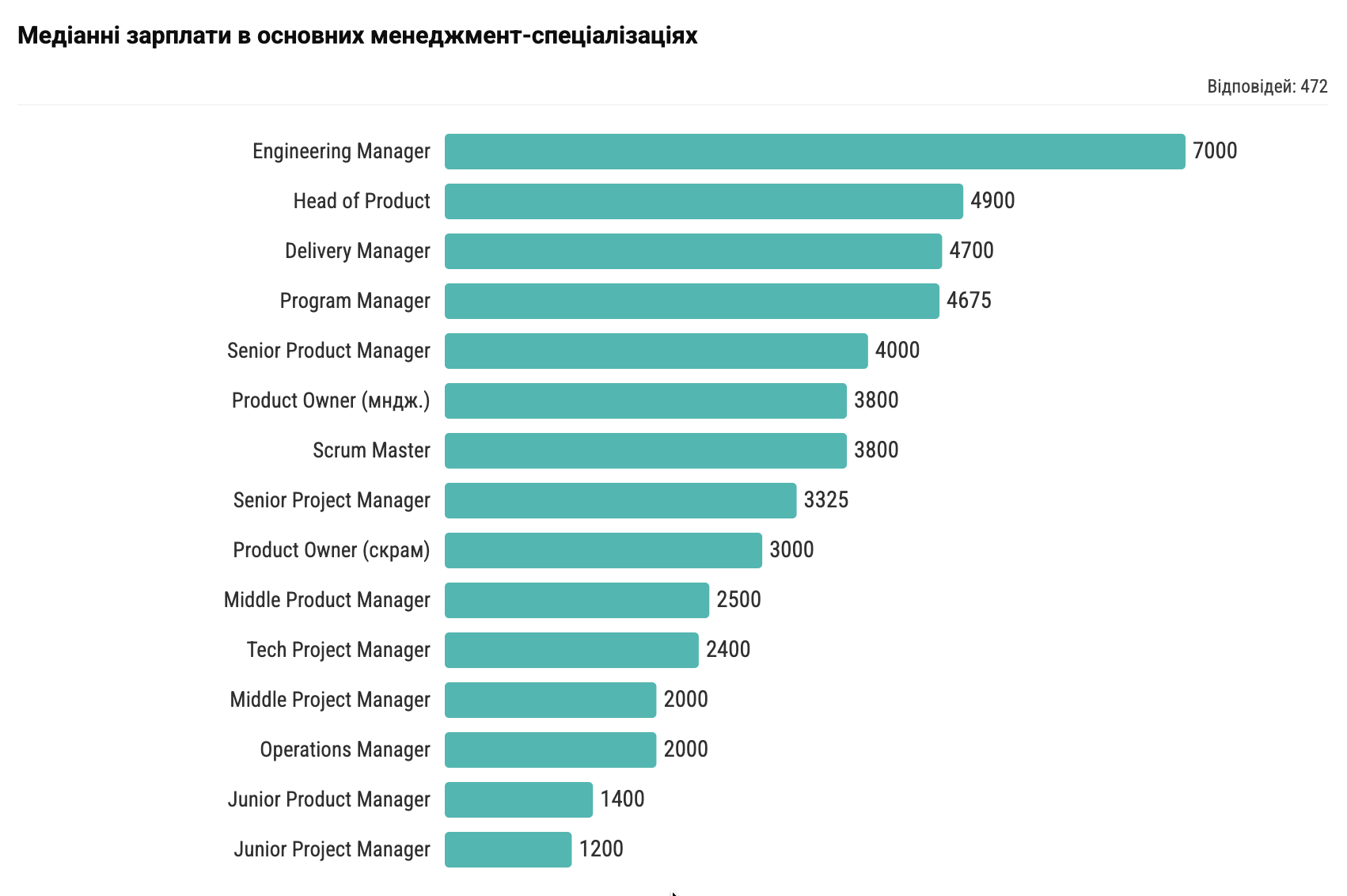 DOU опублікував результати зарплатного опитування в менеджмент-спеціалізаціях в IT. Зокрема Project Managers (PMs), Product Managers, Program Managers, Delivery Managers, Product Owners (як в продакт-менеджменті, так і в скрамі), Scrum Masters, а також Engineering Managers і Head of Product.
