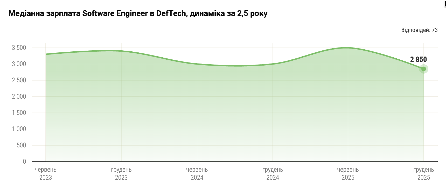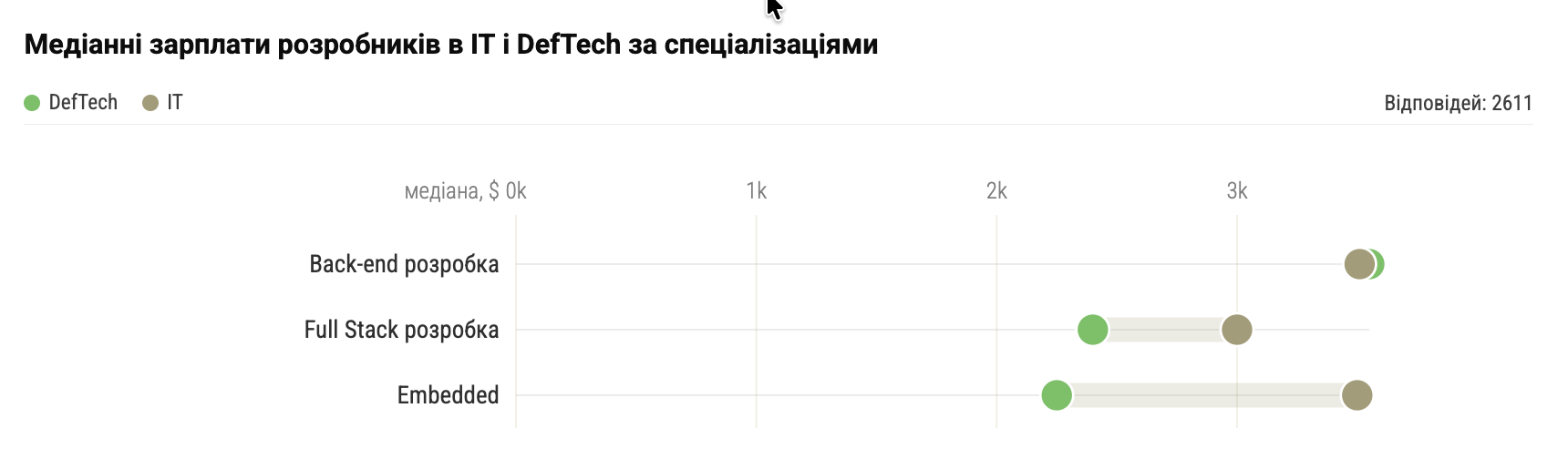 • Медіанна зарплата розробника в DefTech – $2850. Це на $480 менше, ніж у розробників в ІТ загалом.