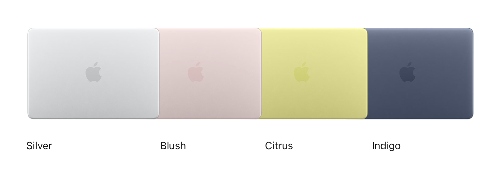 По суті є 4 кольори і дві версії — на 256 ГБ та 512 ГБ, у обох версіях 8 ГБ RAM. Дисплей — 13 дюймів Liquid Retina, 2 USB-C, MagSafe немає.