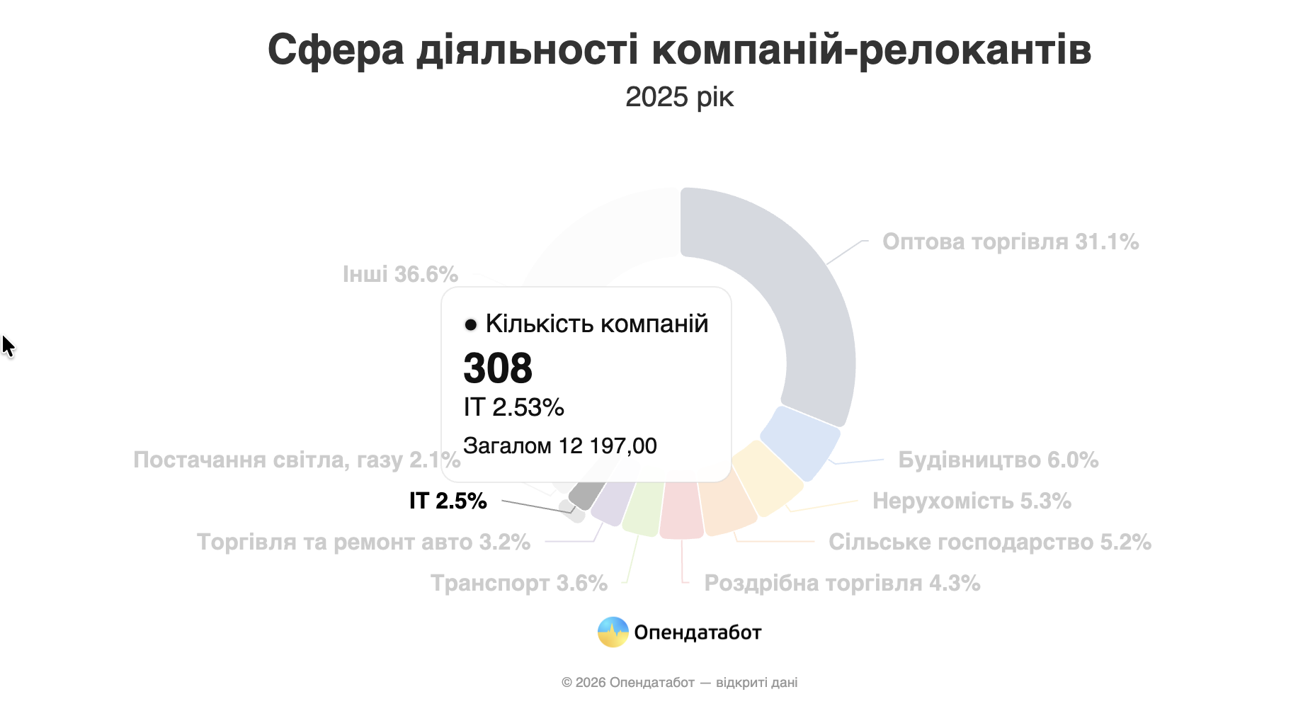 Понад 12 000 компаній релокувались до інших регіонів у 2025 році за даними Єдиного державного реєстру. З них – 300+ ІТ-компаній. Такі дані оприлюднив сервіс відкритих даних Opendatabot. Загалом в реєстрах містяться дані про понад 12 000 ІТ-компаній, тобто релокацію здійснило 2,5% галузі.