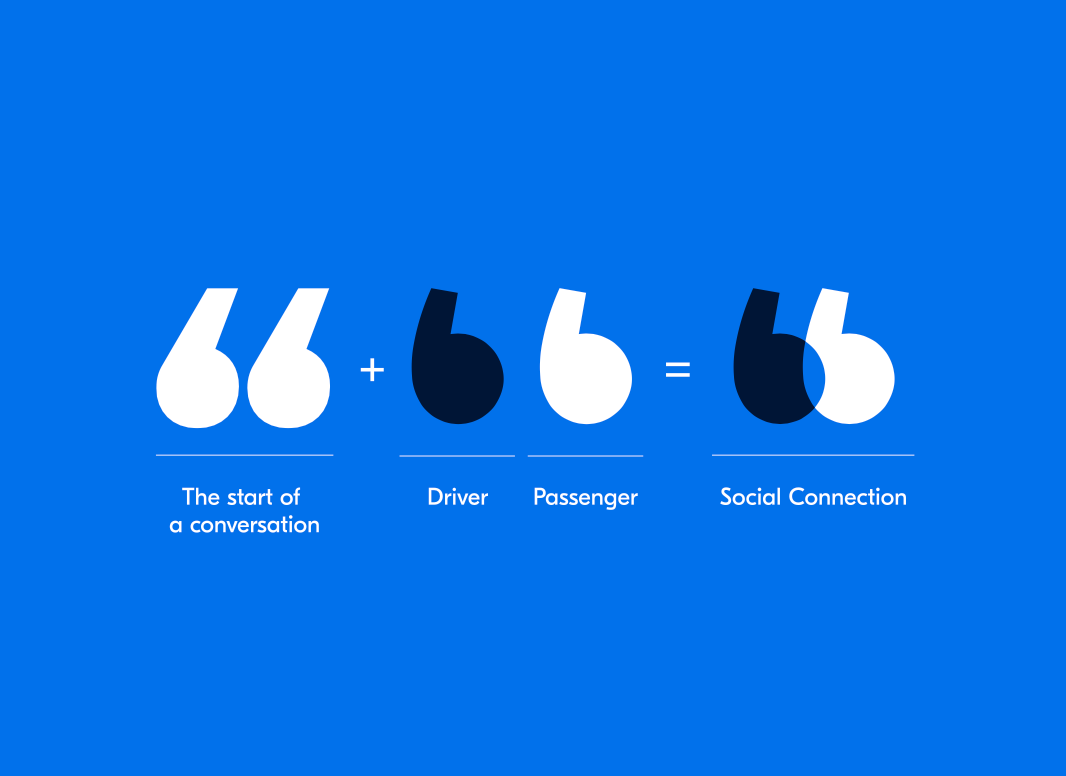 - Фірмові лапки і надалі відображають як спілкування, так і літери «B» у BlaBla, але тепер додатково символізують зв’язок між точкою А і точкою B, незалежно від формату подорожі.