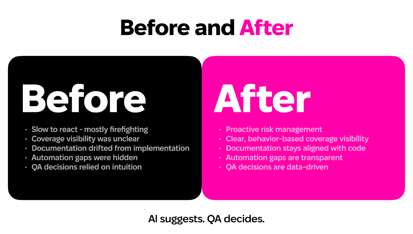- Таким чином, ШІ прискорює опис, а QA гарантує коректність.
