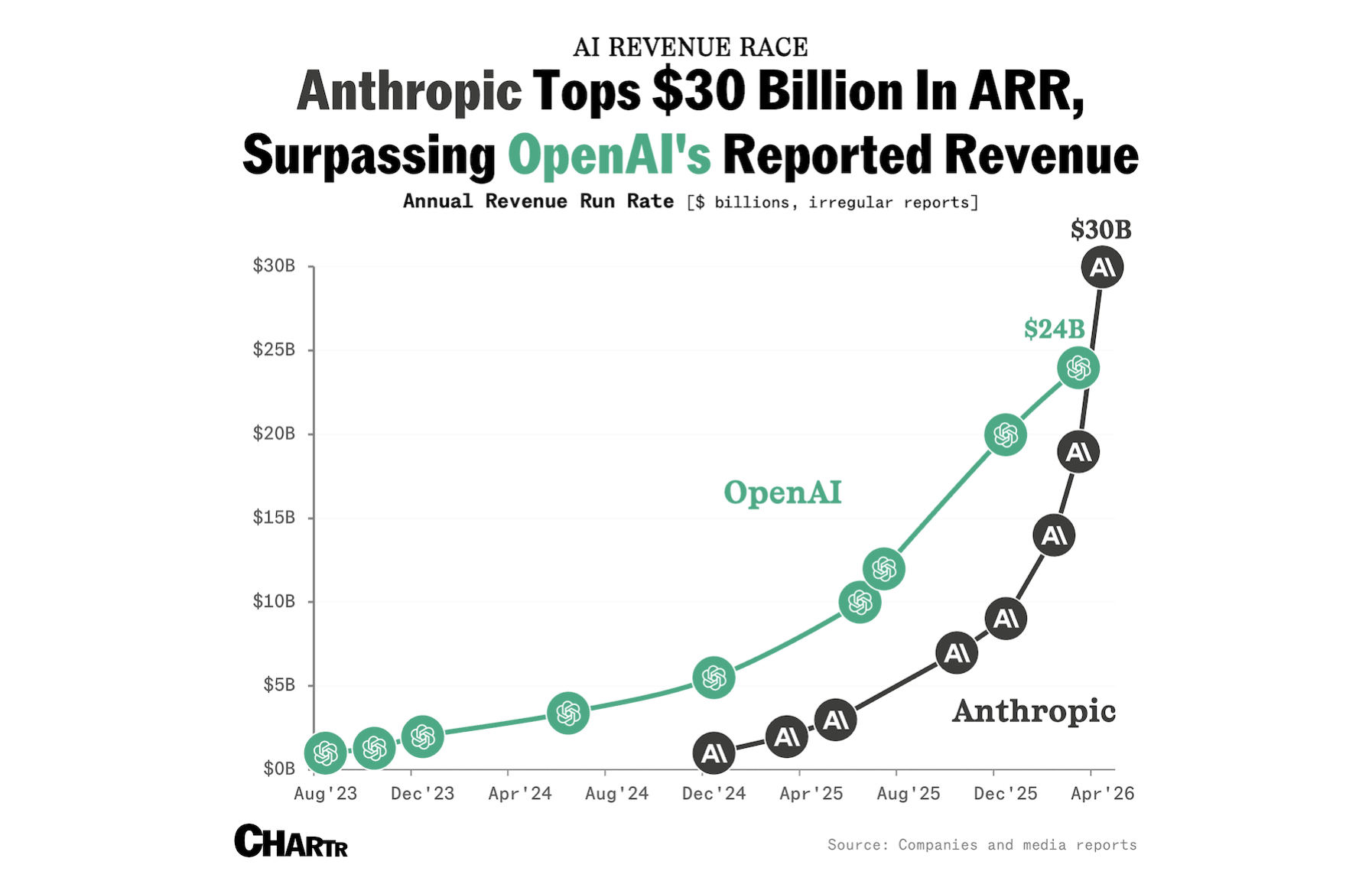 Але останнім часом Anthropic показує феноменальні результати і зростання, компанія розповіла про $30 млрд ARR і супер швидке зростання.