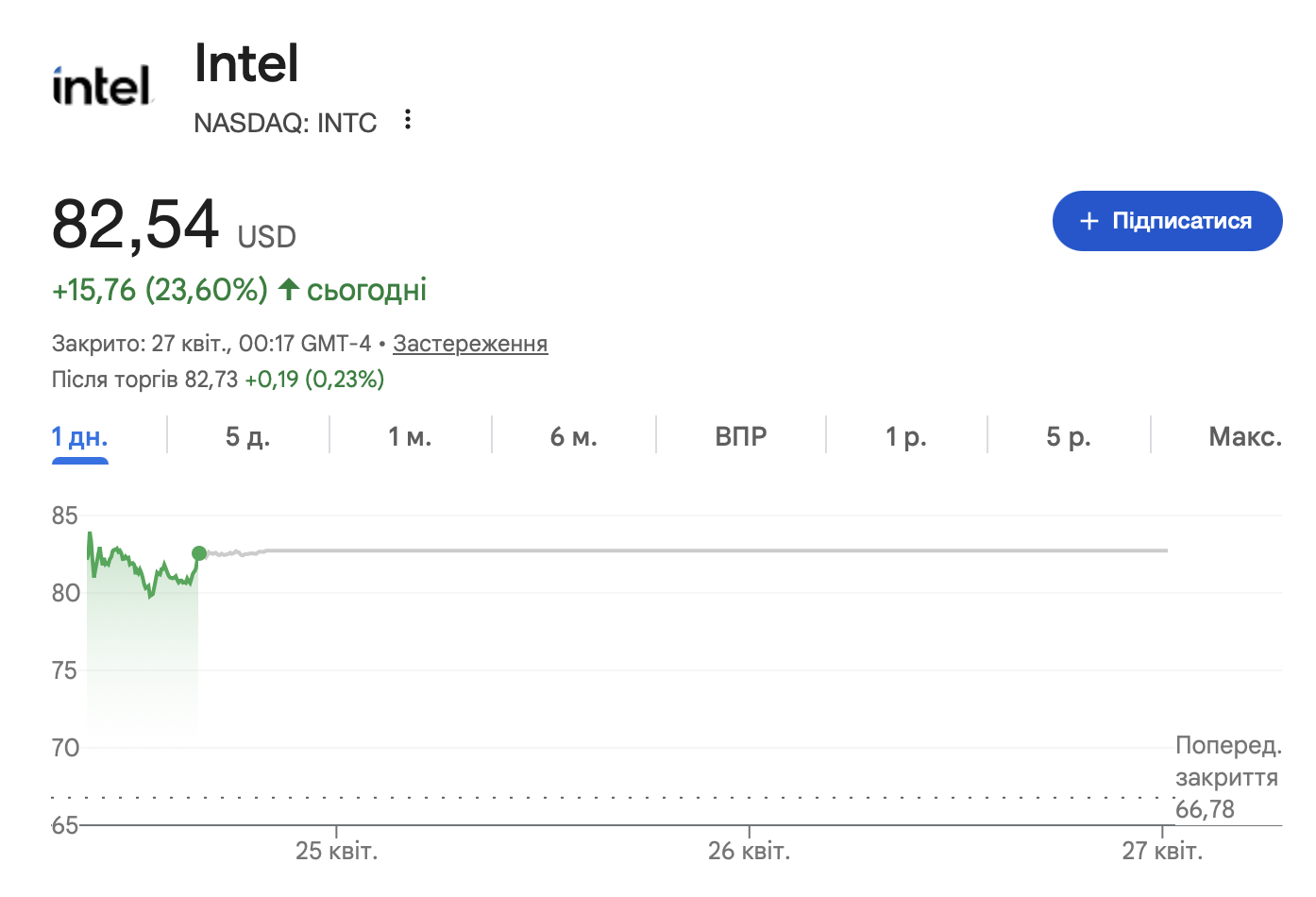 Котирування 24 квітня закрилися на рівні $82,57 і тепер зросли на 124% з початку року після стрибка на 84% у 2025 році. Ралі у п’ятницю перевищило навіть зростання на 23% 18 вересня, коли Nvidia погодилася інвестувати $5 млрд у компанію. Компанія почала активне зростання після інвестицій від адміністрації Дональда Трампа та компанії Nvidia у вересні 2025 року.