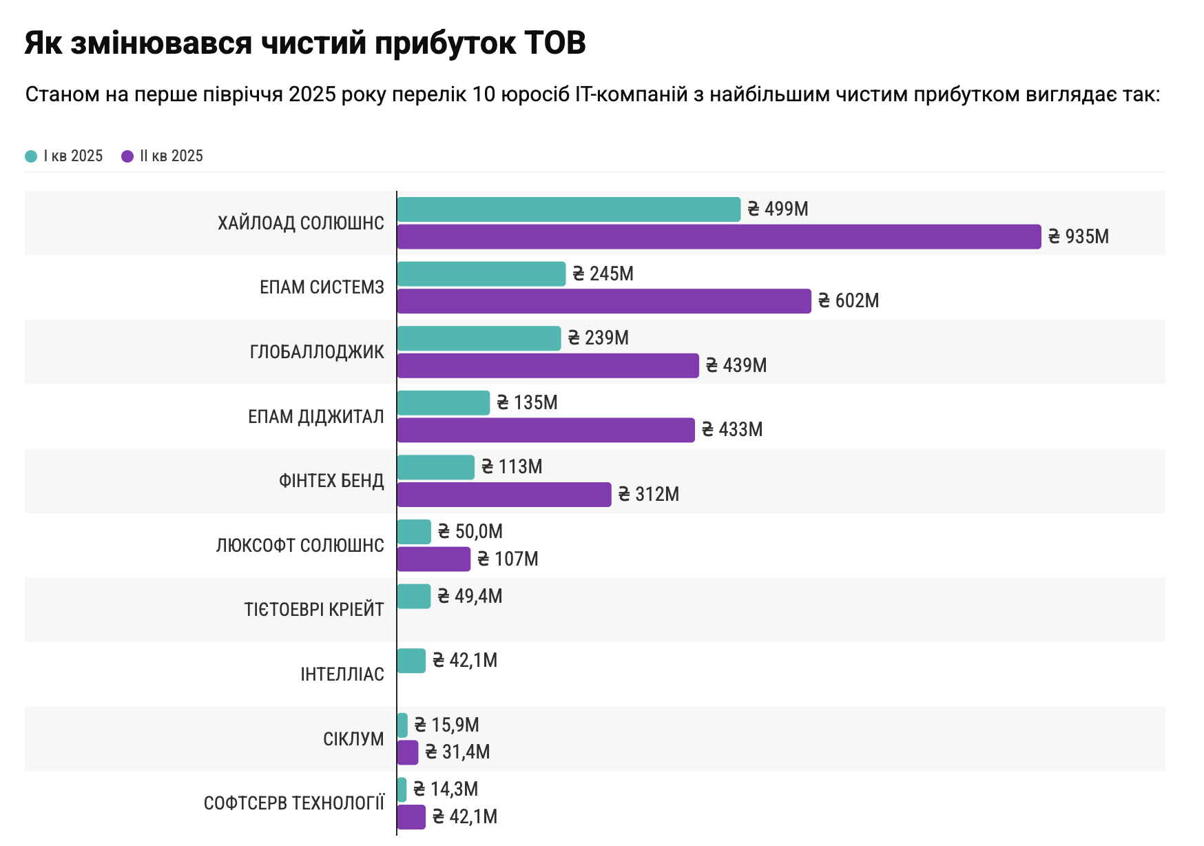- The top 10 Ukrainian IT companies by net profit in H1 2025 are: