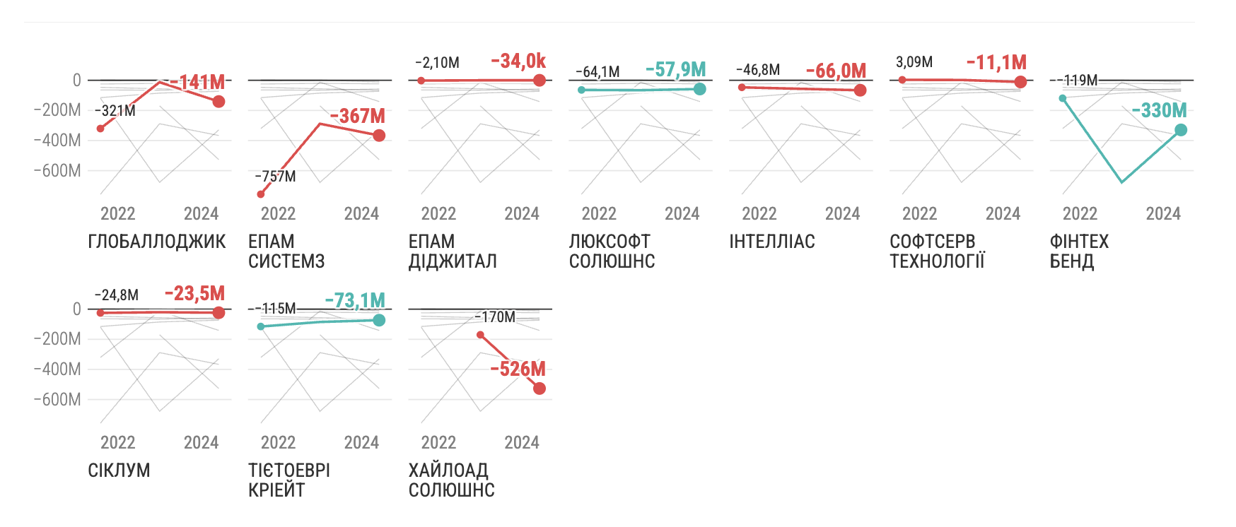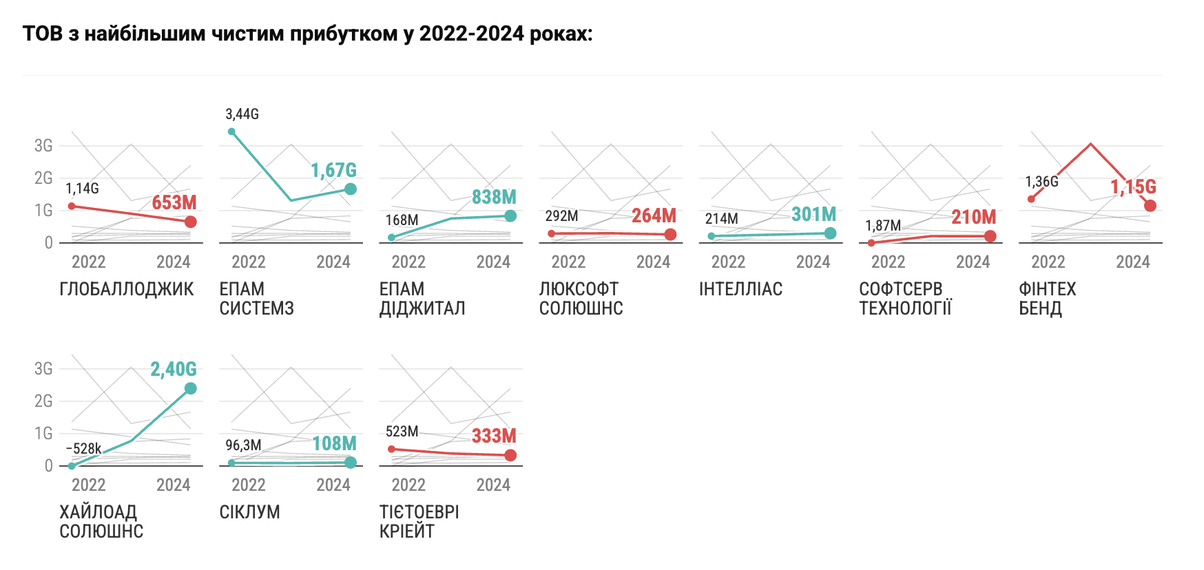 - Softserve Technologies also showed steady growth, increasing its net profit from 1.9 million UAH in 2022 to over 200 million UAH in 2023–2024.