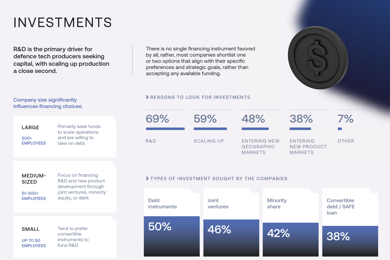 - Investment needs: The biggest demand is for funding in R&D, scaling, new market entry, and product launches.